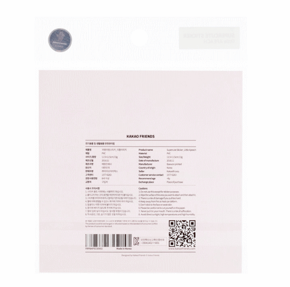 カカオフレンズ スーパーキュート ステッカー リトル アピーチ パッケージサイズ:11.6×14センチ 韓国カカオフレンズショップ輸入版 裏面の商品説明記載のとおり正規品です。