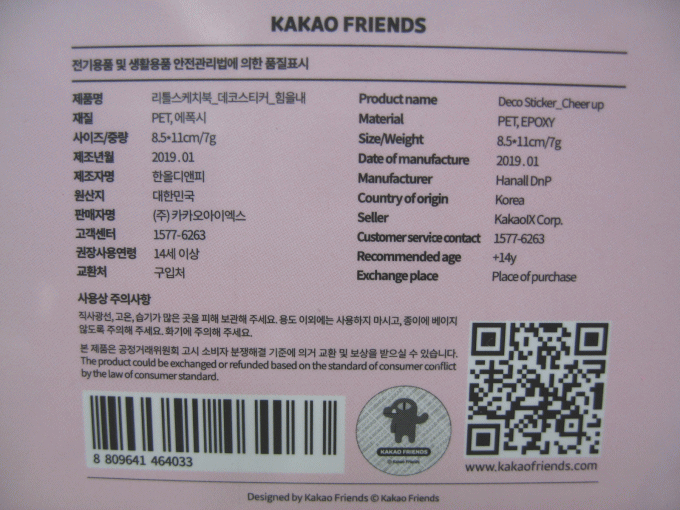 カカオフレンズ デコ ステッカー リトルフレンズ CHEER UP パッケージサイズ:9.5×12センチ 韓国カカオフレンズショップ輸入版 裏面の商品説明記載のとおり正規品です。