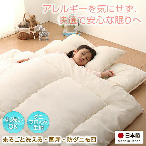 送料無料 洗える 日本製 防ダニ布団 3点セット ジュニア (掛布団+敷布団+枕) 寝具セット 掛け布団 敷き布団 まくら セット 洗える 防ダニ 子供 赤ちゃん キッズ おしゃれ シンプル 無地